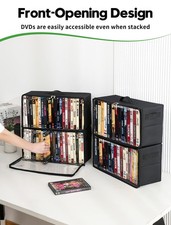 Beveetio 4-Pack DVD Storage Box, Stackable 15.7 x 6.1 x 8.1 inches, Black