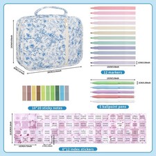 Different colored ballpoint pens and markers can be used to mark and take multi-colored notes. A comprehensive bible study supplies set. Quantity: 1 Bible case, 5 ballpoint pens, 12 markers, 72 index stickers, 200 sticky notes.