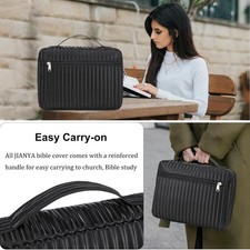 Bible Cover Case with Handle and Zippered Pocket Carrying Bag Black
