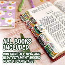 Bible Tabs These large print bible tabs are easy to read. 75 tabs included per set. Made to last! Each laminated bible tab is made with thick sticker paper to ensure durability. Large Print Easy To Read - Designed with love and laminated for protection; These tabs are durable!