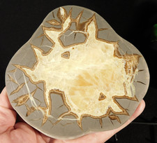 Hello, here is a Big! super nice and 100% natural Septarian Nodule that has been cut into a thick Slab or Slice and HIGHLY polished! It has a Fluorescent GLOW under UV Light and very contrasting colors with a neat lightning like pattern.neat!