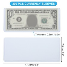 SizeThe bill holder for cash comes with 300 pcs holders, which measure 6.8 x 3inches/17.3 x 7.5cm(L*W), PVC material, Transparent blue color, the sufficient quantity will satisfy your various needs in daily life, and you can also share them with your friends or family members. It fits all banknotes of the US dollar and most banknotes worldwide, great for collectibles with perfect size, such as stamps, cards, tickets, bills, etc.Top-Insert DesignUnique top-loading design makes your valuable bill money or souvenir collectibles easy to load in and take out and avoid folded or scratched.Good Quality MaterialThe dollar bill frame is made of good quality acid-free PVC, is strong and not easy to bend, or dust, and is waterproof, which can protect your collection, it is durable and can be used for a long time.
