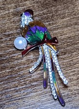 Bird of Paradise Brooch Boho Pin Multi Color Enamel Silvertone