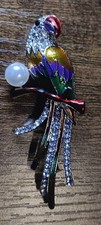 Multi color enamel and sparkly rhinestone. Faux pearl accent. C Clasp. "2.75 Silvertone Boho Glam. Dress up purse, jeans, hats