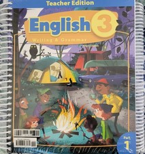 BJU PRESS English Writing & Grammar 3 Third Edition Teachers Edition and the companion student workbook. Teacher Books are brand new still in plastic wrapping. The student workbook was issued but never used, all pages are clean and unfilled out. Total of 3 books. 2 Teacher manuals (part 1 & part 2) 1 Student Workbook