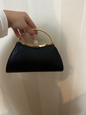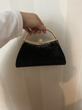 Black Beaded Evening Bag with Gold Handle and Decorative Clasp