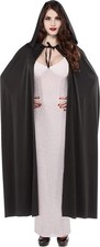 Black Hooded Cape Dramatic black hooded cape crafted from polyester for adults. Perfect for villains, wizards, vampires, and mysterious characters. One size fits all adults! Dramatic black hooded cape crafted from polyester for adults.