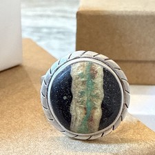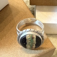 BLACK JACK TURQUOISE Navajo Southwestern Adjustable Double Band Matte Sterling Silver. Sitting at 8 but is is adjustable up or down in size. Beautiful ribbon Black Jack turquoise. Please message if any questions.