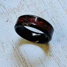 Black Polished Red Scroll Inset Ring Size 10
