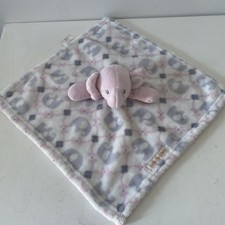 Blankets & Beyond Lovey Elephant Pink White Gray Baby Security Blanket 14x14