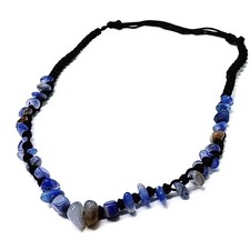 Blue Agate Gemstone Necklace, 16mm Central Stone, Adjustable Length