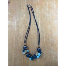 Blue Multi Strand Seed Bead Statement Necklace Toggle Clasp Artisan Layering