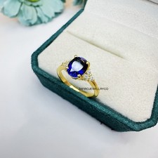Blue Sapphire Ring, Wedding Ring, Three Stone Ring, Bridal Ring, Lab Created