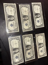The product is a set of six circulated $1 banknotes from the United States, ranging from different years. These blue seal notes are categorized as Grade EPQ/PPQ and are ungraded. Perfect for collectors or investors looking to add a variety of small-size US paper money to their collection.