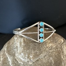 Blue Turquoise Navajo Sterling Silver Cuff Bracelet 19294