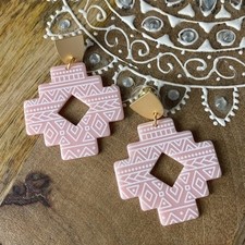 Blush Pink Aztec Geometric Drop Earrings | Boho Statement Jewelry