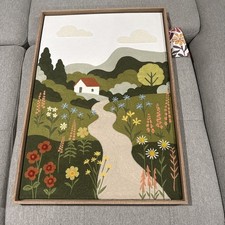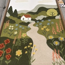 Purchased and never used- this is such a sweet woven embroidered wall art. Framed and 18x26 size, cozy statement piece for your home. Made with 100% cotton woven in canvas.