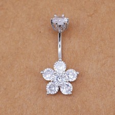 Body Pricing Belly Button Ring Round Cut Simulated Diamond 14K White Gold Plated