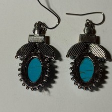 Boho Dangle Earrings Faux Turquoise Silver Tone Fish Hook Southwestern Style additional preview
