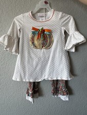 Bonnie Jean Pumpkin Fall 2 Piece Outfit Set Girls 4T Top Pants Ivory Multicolor