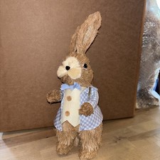 Boy Easter Bunny Sisal Straw 14 inches tall, Big Eared Bunny with egg basket