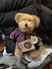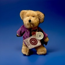 The product is an 8-inch plush bear named Baxter T. Birch from Boyds. This bear comes with a purple velvet winter coat and scarf, perfect for a cute and cuddly winter-themed look. Made with high-quality materials, this vintage collectible features intricate details and is a great addition to any bear or doll collection. With its charming design and cozy accessories, this Baxter T. Birch bear is sure to bring joy and warmth to any teddy bear enthusiast's heart.