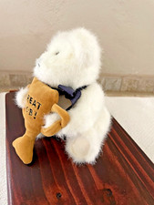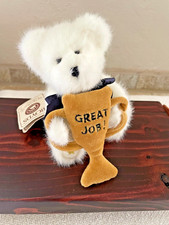 Boyd's Bear Mini White Plush Bear "Great Job" Trophy Blue Ribbon with TAG