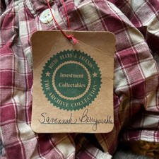 Charming teddy bear in burgundy plaid attire. Perfect collectible piece.