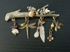 Branch Lady Bug Bee Dragonfly Butterfly Silver Copper Tone Bead Brooch
