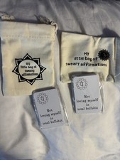 The product is a package of two unopened brand new bags of "sweary affirmations." This means that the affirmations inside the bags are sealed and have not been opened or used. The concept of "sweary affirmations" contains unique or unconventional positive affirmations designed to help with motivation and self-confidence. The brand new in plastic packaging indicates that these affirmations are fresh and ready to be used. Small and pocket sized. Great gift for you and your bestie!