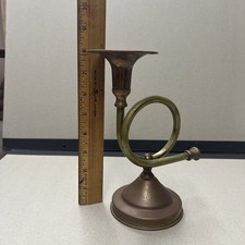 This medium-sized brass candlestick holder is perfect for any room and all occasions. The round shape and gold color add a touch of elegance to your furniture or decor. It is suitable for indoor use and can be cleaned with a damp cloth for easy maintenance. Made in the late 20th century with an antique brass finish, this candle holder is a stylish and timeless addition to your home. weathered and very used looking see pictures for using your own description.