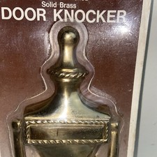 Add a touch of vintage elegance to your home with this beautiful solid brass door knocker. The mirror polished finish gives it a stunning gold color that will complement any decor. Measuring 7.5 inches in height and 3 1/2 inches in width, this door knocker is the perfect size for any door. Crafted from high-quality brass, this door knocker is durable and built to last. The vintage design adds a classic touch to your home, while the modern construction ensures that it will function flawlessly for years to come. Whether you're looking to upgrade your home or simply want to add a touch of sophistication to your space, this door knocker is the perfect choice. New old stock sealed in package.