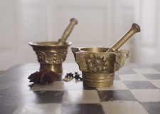 Brass Mortar and Pestle Vintage Decor Apothecary Spice Grinder Rustic Kitchen