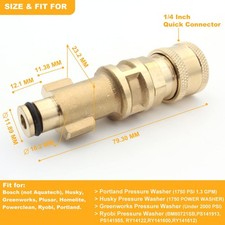 Convert to 1/4' Quick Disconnect female fitting. USAGE: Connect gun to the nozzle of the pressure washer or foam cannon with this 1/4 plug.