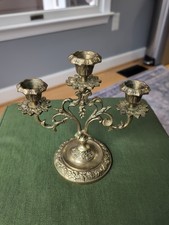 Brass, Triple Arm Candelabra Hollywood Regency Florentine Candlestick Grape Vine