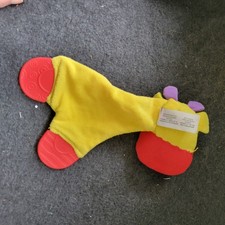 The Bright Starts Baby Teether Giraffe Security Blanket Crinkle Lovey Kids II is a plush baby toy designed for newborns and up. Featuring a bright yellow color and jungle theme, this unisex toy provides comfort and security for babies. The 10" size makes it easy to grasp and chew on, while the crinkle material inside adds a fun sensory experience for little ones. Perfect for soothing babies and providing a sense of love and security.
