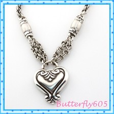 This is the older version of this necklace. The b heart says Taiwan on reverse. Heart: 7/8". Silver plated.