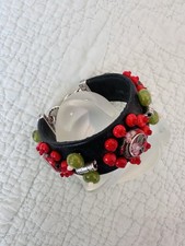 The Brighton Leather Toggle Bracelet is a stylish and versatile accessory perfect for various occasions such as Mother's Day, anniversaries, and birthdays. Made from black leather, this cuff-style bracelet features a toggle closure for easy wear. The beaded design adds a touch of elegance to the piece, making it a great gift option for someone special. The brand's signature is not featured, but the quality craftsmanship and classic style make this bracelet a timeless addition to any jewelry collection.