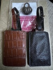 Brighton luggage lock & 2 luggage tags. All items in pre used good condition. Silver buckle on 1 of the tags is showing wear. See photos as they are part of the description. PayPal only Shipping continental US only