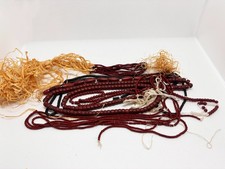 Assorted sizes of brown trade beads. Many of them are on their original stringing material.