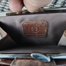This is a classic Giani Bernini trifold indexer wallet in a rich brown "softy" leather. Interior Details: Includes multiple credit card slots, a clear ID window, and a deep bill fold.