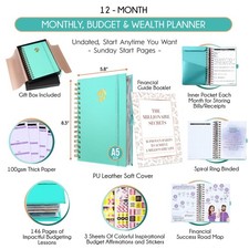 FINANCIAL PLANNER - Create empowering financial habits and eliminate destructive ones. It features a PU leather hardcover, thick 100 gsm paper, a pen loop, elastic band, and a convenient receipt pocket.