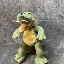 This Build-A-Bear Workshop plush stuffed animal is a 16-inch green and yellow alligator crocodile with a plush material construction. It belongs to the animal species of alligator and is part of the Build-A-Bear franchise. Designed for children ages 3 and up, this adorable plush toy features yellow eyes and falls under the theme of animals within the Dolls & Bears category. Perfect for young animal lovers, this Alligator plush is a cute addition to any stuffed animal collection.