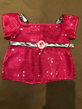 Build a Bear Barbie Dress / Hot Pink Sequin Silver Satin Dress