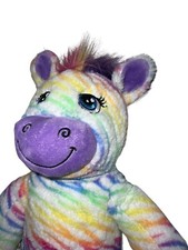 Build A Bear Pastel Rainbow Zebra Plush Stuffed Animal 16" 2014 Retired.