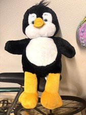 Build A Bear Penguin Plush Soft Toy Stuffed Animal 16" Black White Yellow Great condition