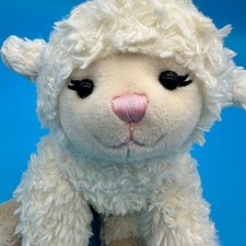 This cuddly sheep features unique tan patterned hooves with a swirl design and a sweet pink satin nose. Animal: Lamb / Sheep. Material: Polyester Fiber.