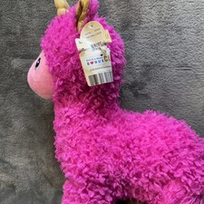 The product is a medium-sized Build-A-Bear Workshop stuffed animal in the shape of a llama, specifically designed as a Llamacorn with sparkly pink features. It comes with a tag and measures 18 inches in size. This toy belongs to the Build-a-Bear character family and is perfect for children who enjoy imaginative play with unique and colorful stuffed animals.
