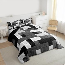 Building Blocks Comforter Set Twin Size Comforter Brick Bedding Set Breathable Black Grey White Duvet Set Room Decor Quilt Set. Size: Twin size includes 1 comforter 68"x90", 1 pillowcase 20"x30"; full size includes 1 comforter 79"x90", 2 pillowcases 20"x30"; queen size includes 1 comforter 90"x90", 2 pillowcase 20"x30"; king size includes 1 comforter 104"x90", 2 pillowcase 20"x36".