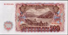 This is a rare and difficult to obtain banknote from Bulgaria, specifically from the year 1951. It is in uncirculated condition and has not been certified for its authenticity. This particular note, with a face value of 500 leva, is a unique piece of history from the country of Bulgaria.